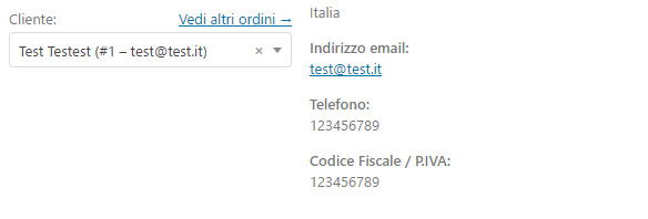 Il procedimento è molto simile al precente, in questo caso abbiamo utilizzato il filtro 'woocommerce_admin_billing_fields', notate che per richiamare il dato, abbiamo rimosso dalla key utilizzata in precedenza (billing_piva) il prefisso 'billing_'.