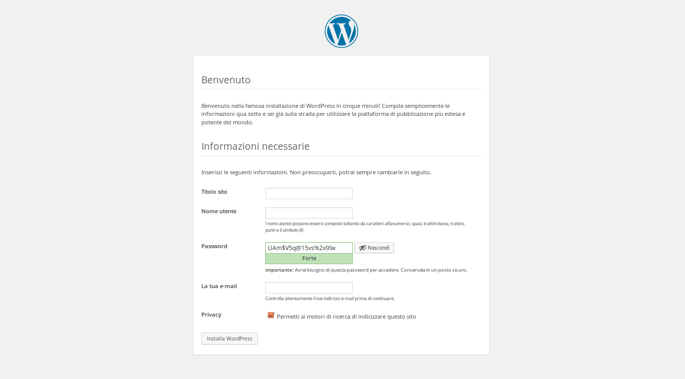 Basterà solo compilare tutti i dati e cliccare installa Wordpress.