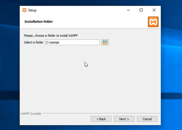 La terza schermata ci chiede in che cartella installare Xampp. Di default la cartella è C:\xampp