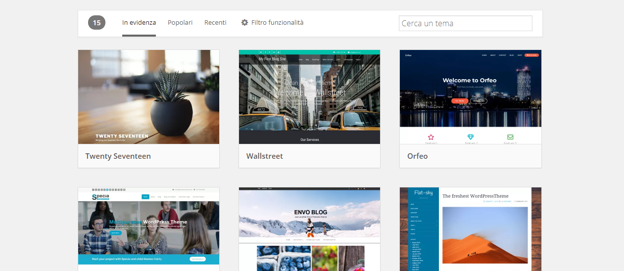 Il mondo Wordpress mette a disposizione una directory ufficiale dove poter scaricare alcuni temi gratuiti creati da numerosi developer che hanno voluto dare un proprio contributo alla community.