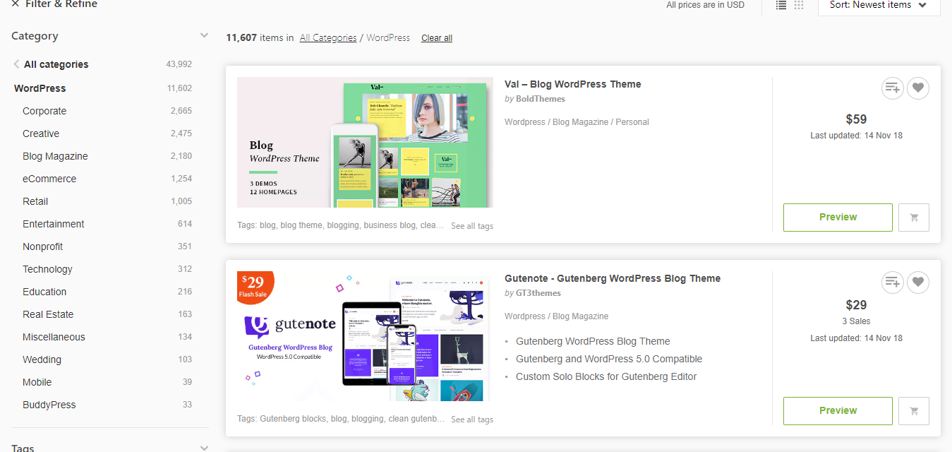 Il principale sito di vendita di temi wordpress è sicuramente Themeforest , dove si può trovare una quantità di temi impressionante, per tutti i gusti.