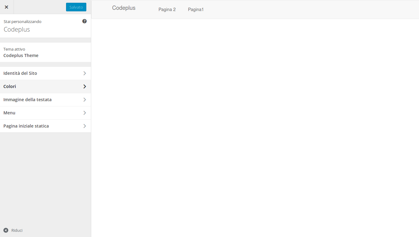 Se ora apriamo il nostro pannello di amministrazione clicchiamo su Aspetto->Personalizza vediamo che si sono create due nuove voci, Colori e Immagine della testata.