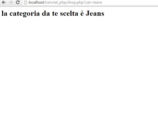 Ci concentriamo sulla prima riga e vediamo che per recuperare il dato abbiamo utilizzato $_GET['cat'], ovvero abbiamo recuperato dal array $_GET il valore per la chiave cat ( Vedremo più avanti come funzionano gli array ). Quindi se vogliamo recuperare il valore di una chiave (cat) passata con il metodo get utilizzeremo $_GET.